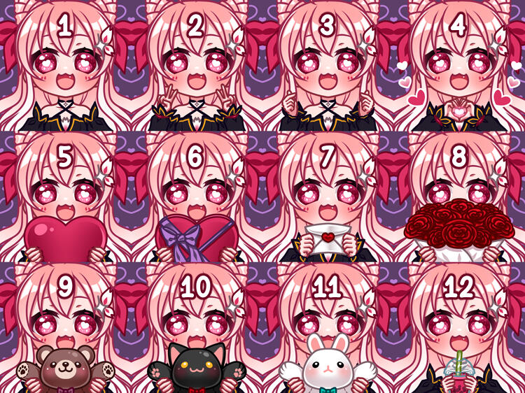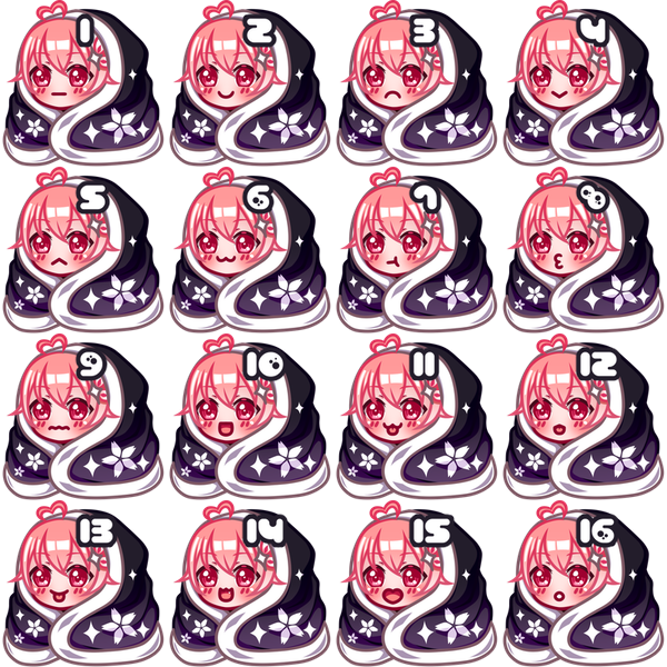 Extra variations(same character but different set of eyes) - 3USD or 1 ko-fi each*Orders + payment for these can be made through my ko-fi page! I can also accept payment through paypal if you'd prefer. These are all on a pre-made base, hence the lower pricing than my normal emotes! You will receive the original size(500x500px)