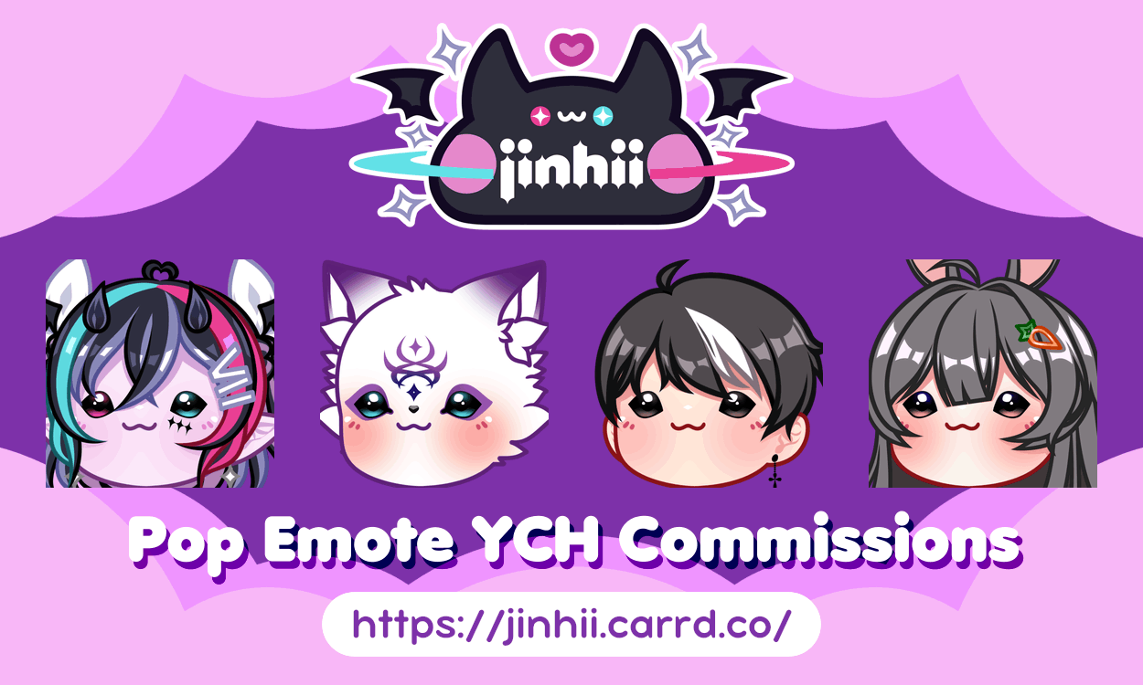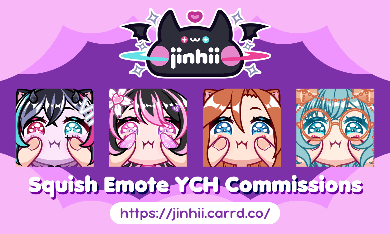 Hello! I'm Jinhii and I am a self-taught digital artist and freelancer. I really love anime and cute animals(especially cats) and playing games like cute MMOs/RPGs, Overcooked, Genshin Impact, Arknights, Otome games, and other PC/mobile games in my free time! I do various commissions such as chibis, icons, twitch emotes/badges, logos, etc. so please check them out if you're interested in getting anything from me!♡