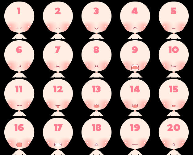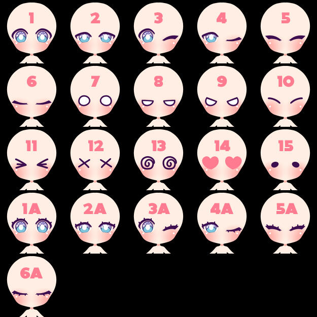 of the same character with different options(expressions, poses, etc)✔️ Humans, Kemonomimis, Human-faced anthros, Young characters, Cute characters, Any skin color❌ Muzzled Anthros/Furries, Non-humanoid characters, Old characters